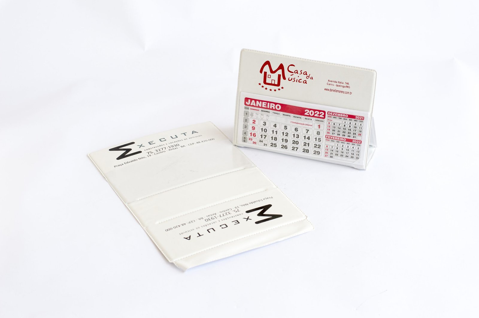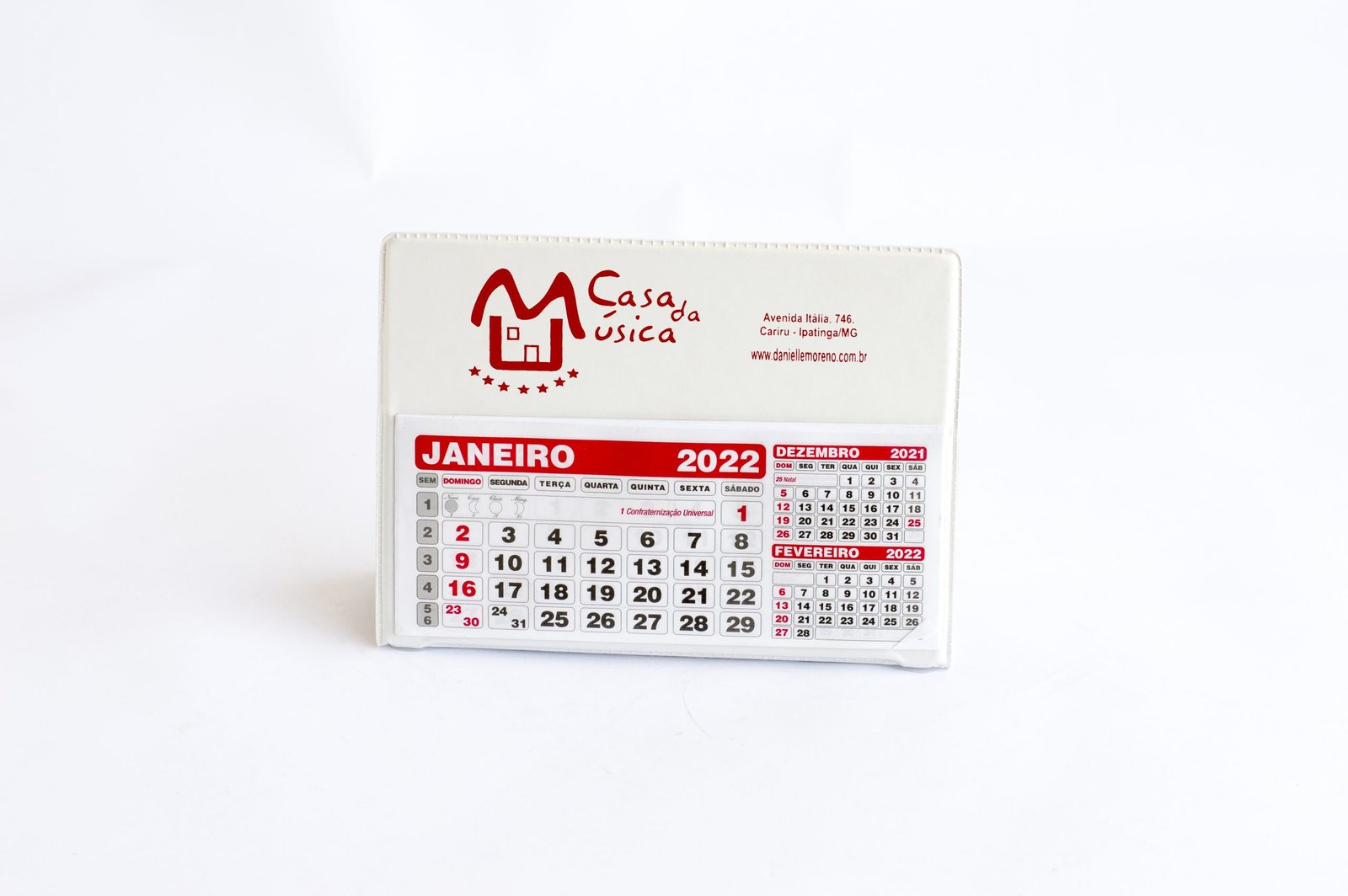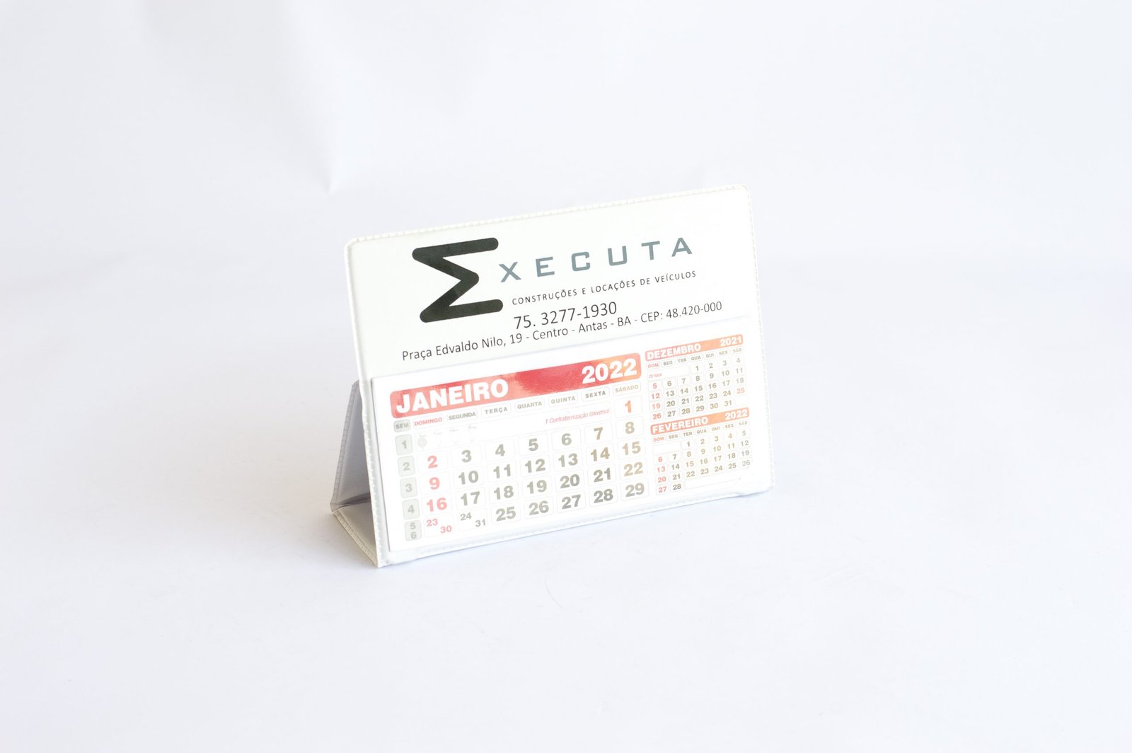 Calendário de mesa, impressão serigráfica em até 3 cores.