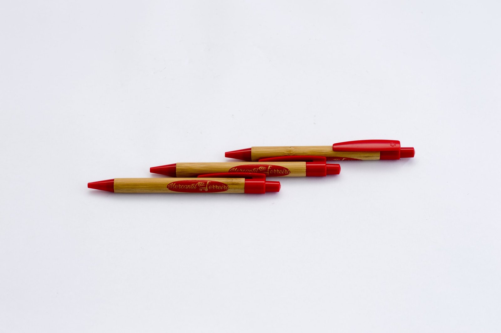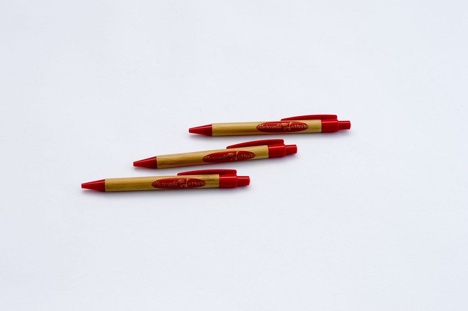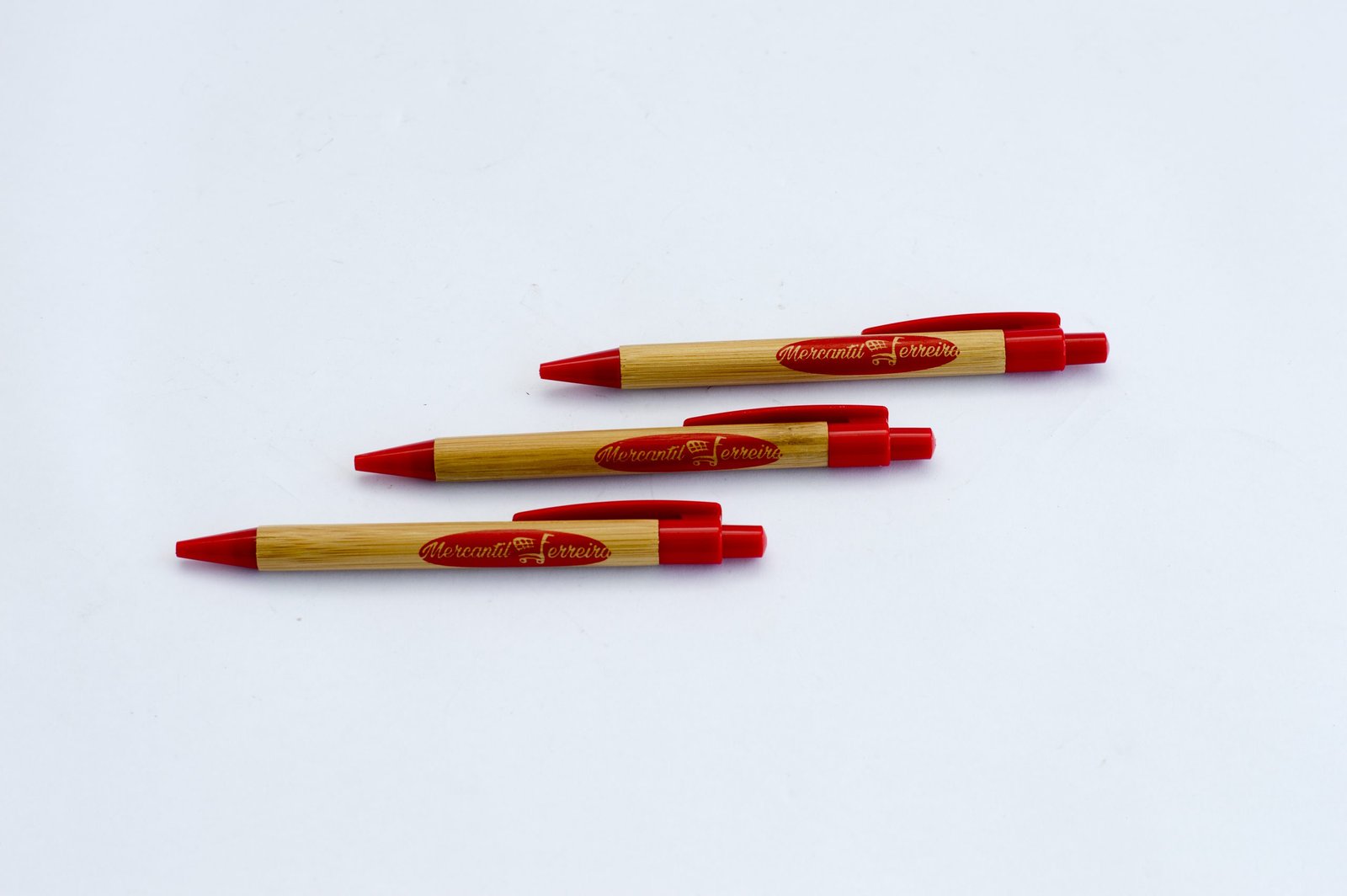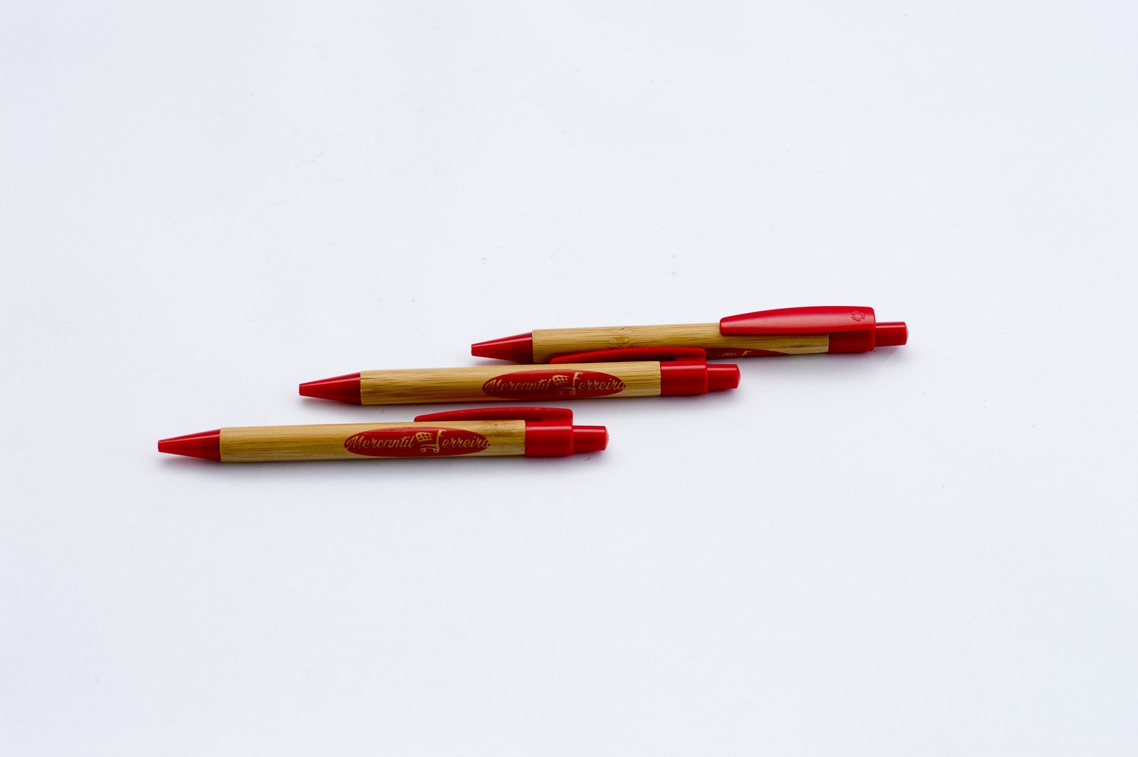 Caneta ecológica em bambu, com acionador, clip e ponteira plásticos.