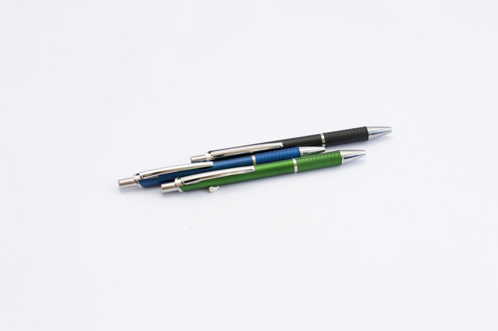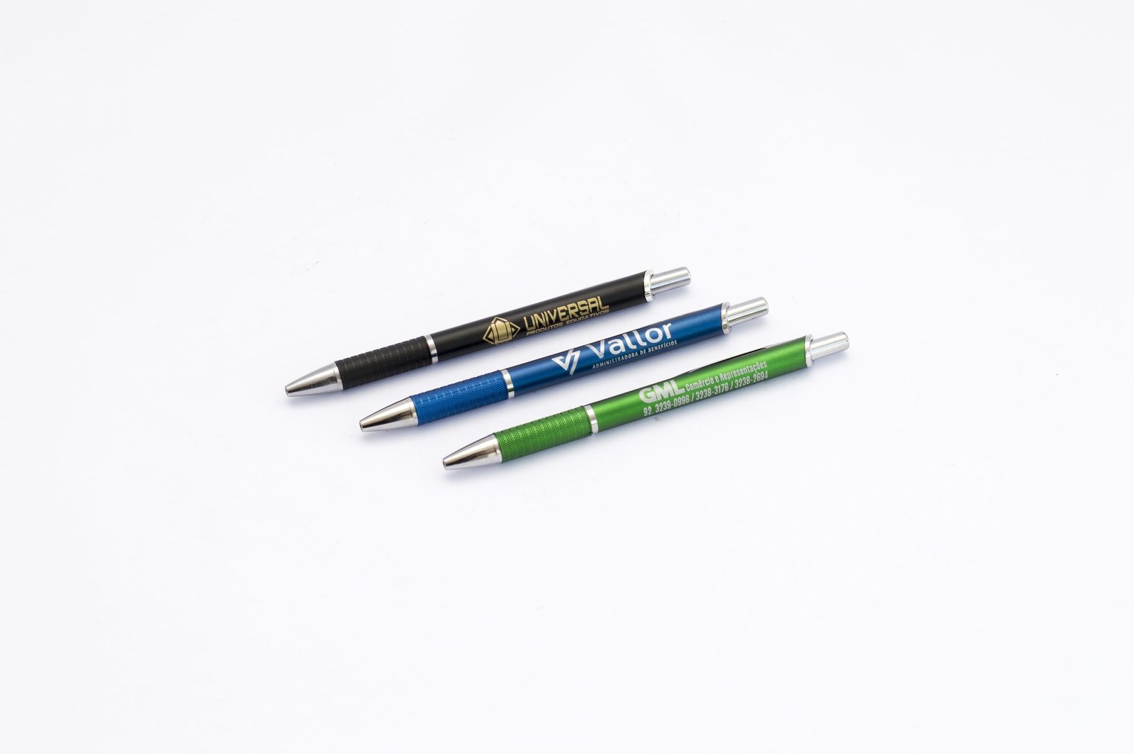Caneta Personalizada, plástica metálica, acionador e ponteira cromados.