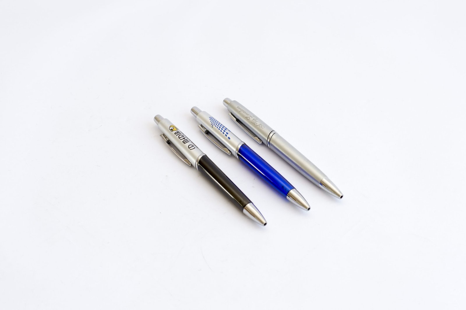 » Caneta Personalizada, plástica com clip de metal, acionador e ponteira cromados.