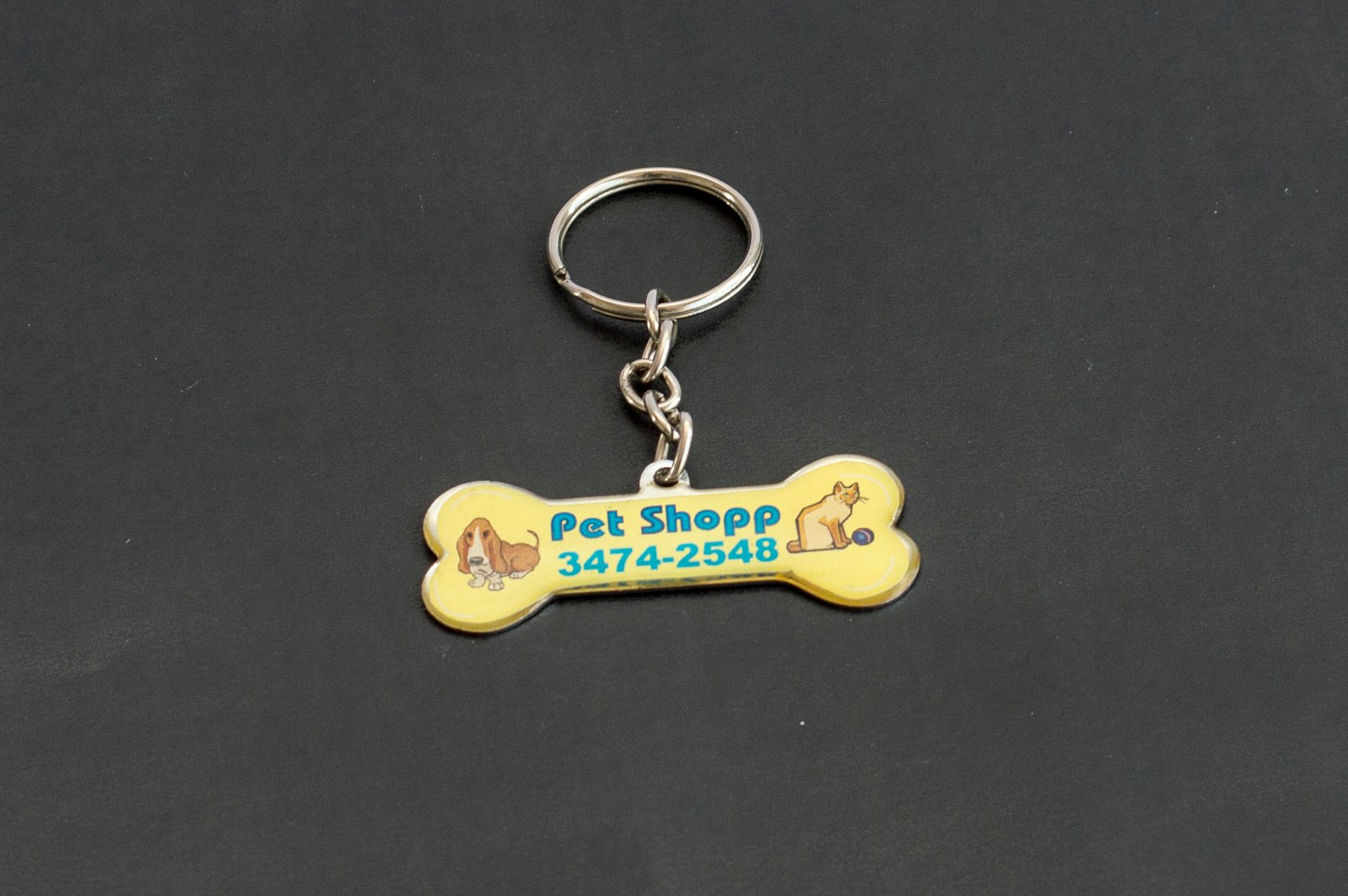 » Chaveiro chapa em formato de osso com corrente.