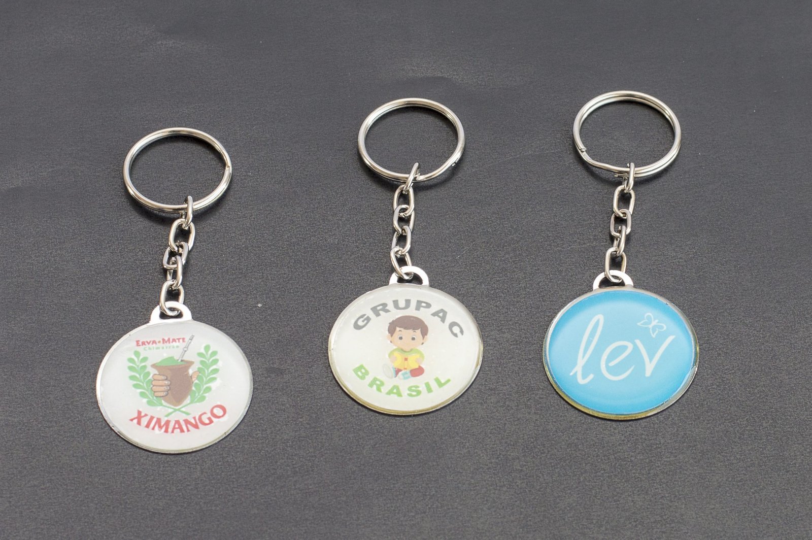 Chaveiro personalizado chapa redonda em metal resinado.