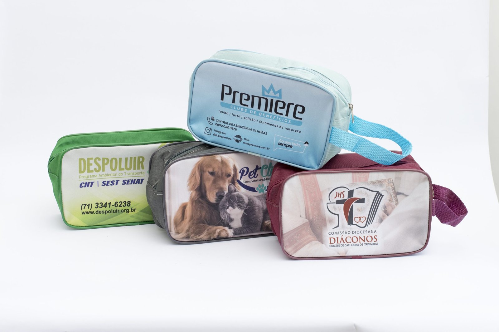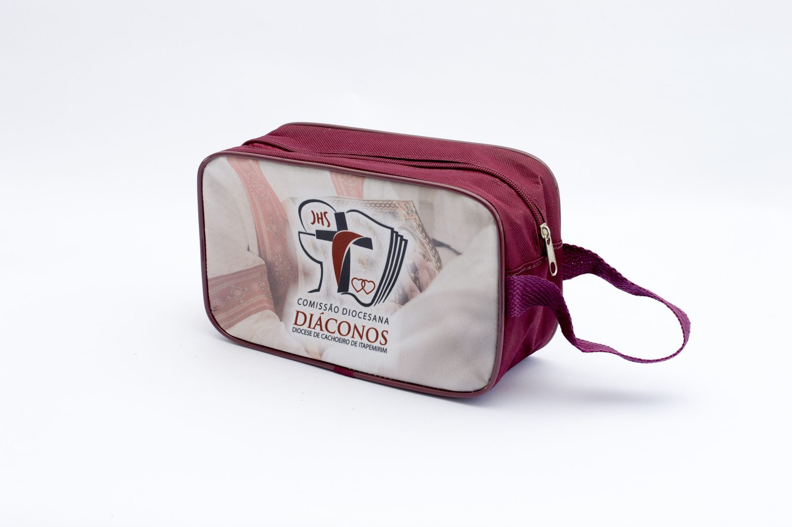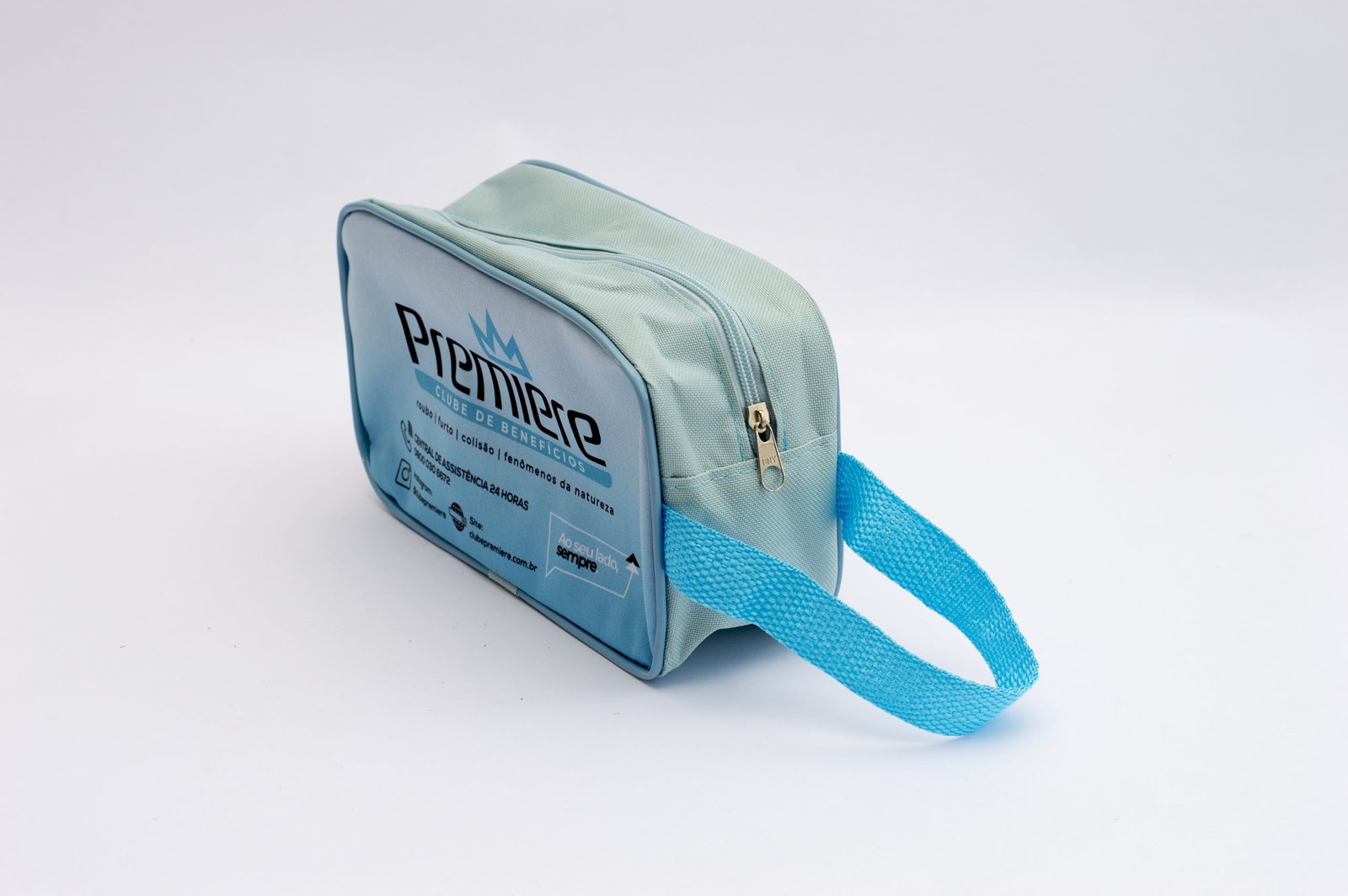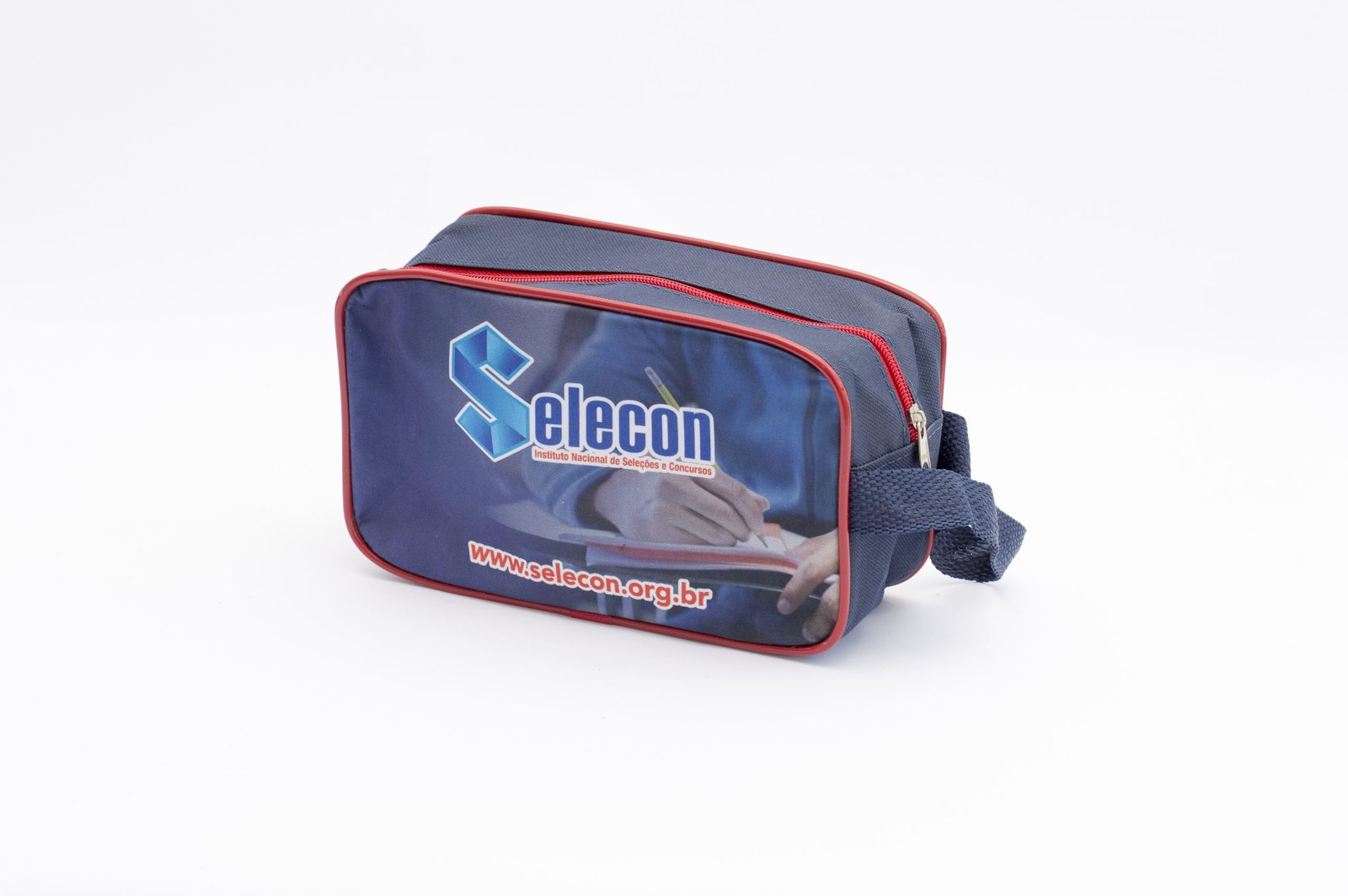 » Necessaire Grande Personalizada com alça de mão, confeccionada em lona poliéster e impressão em lona polipremium.