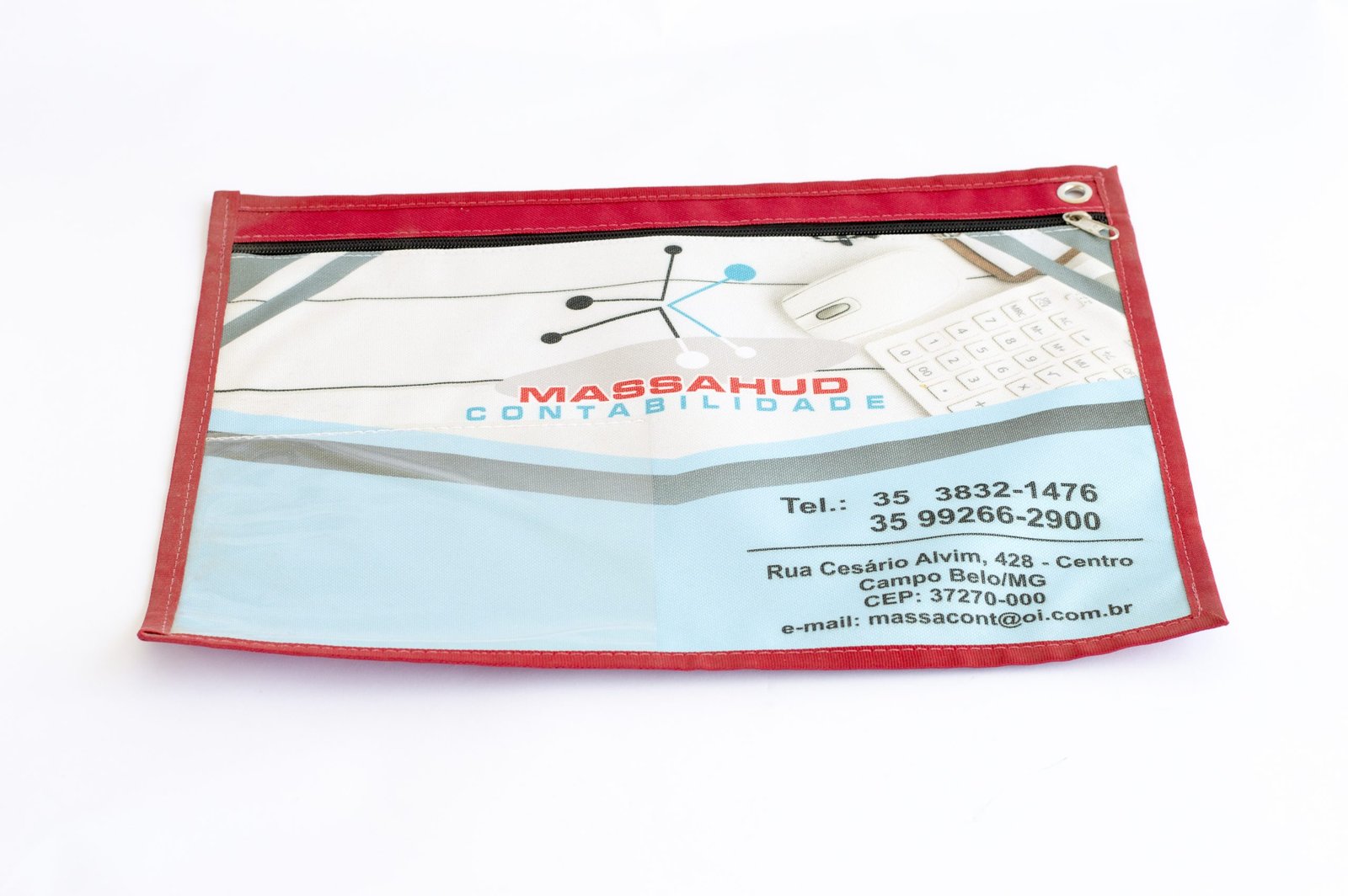 Pasta malote em lona e impressão em Lona Polipremium, com zíper frontal.