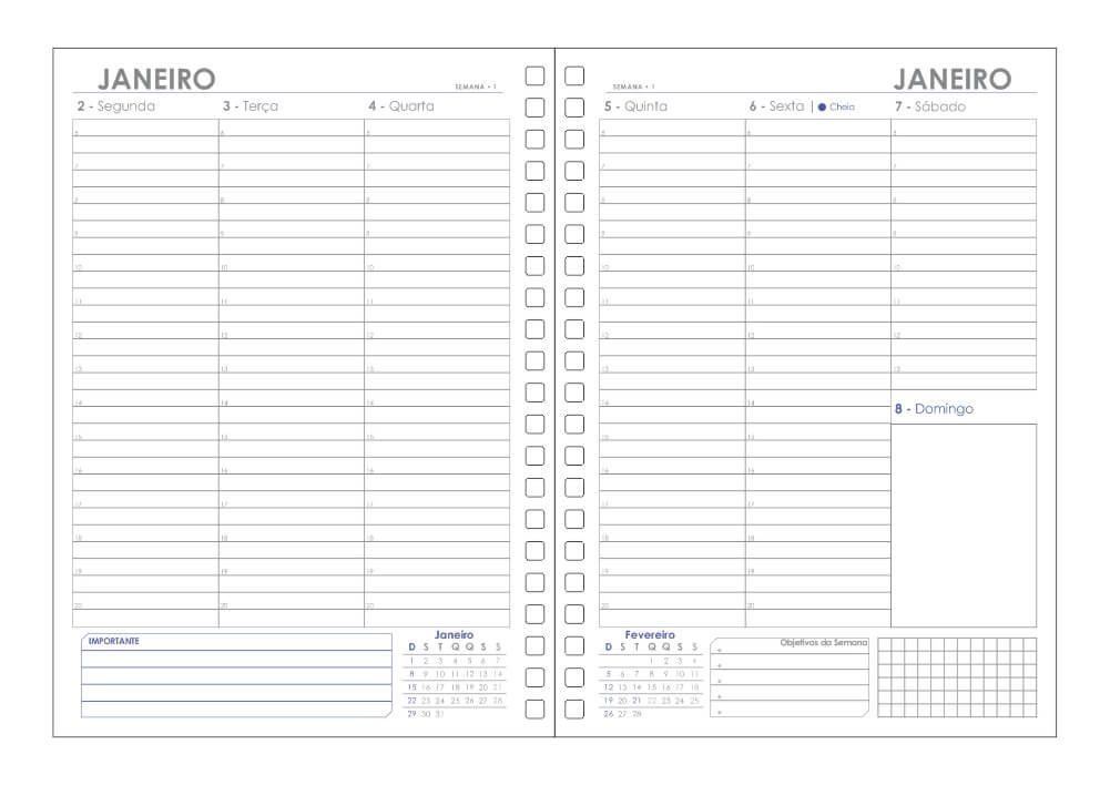» Miolo: 19cmx26,1cm, 190 pág. (95 folhas), papel Offset 75g, impressão 2 cores;